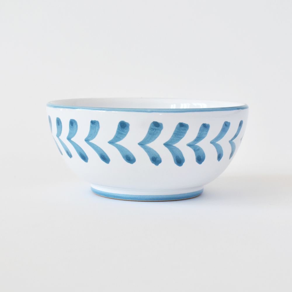 Le versatili ciotole per cereali in Frecce Turchese sono realizzate a mano in esclusiva per Bellezza Home da artigiani di Deruta, in Italia. Abbina queste ciotole, piatti piani, piatti da insalata e tazze in ceramica dipinta a mano con gli altri colori Frecce e Piume della nostra nuova collezione di stoviglie Semplice, così come con tutte le nostre collezioni di stoviglie decorate.
