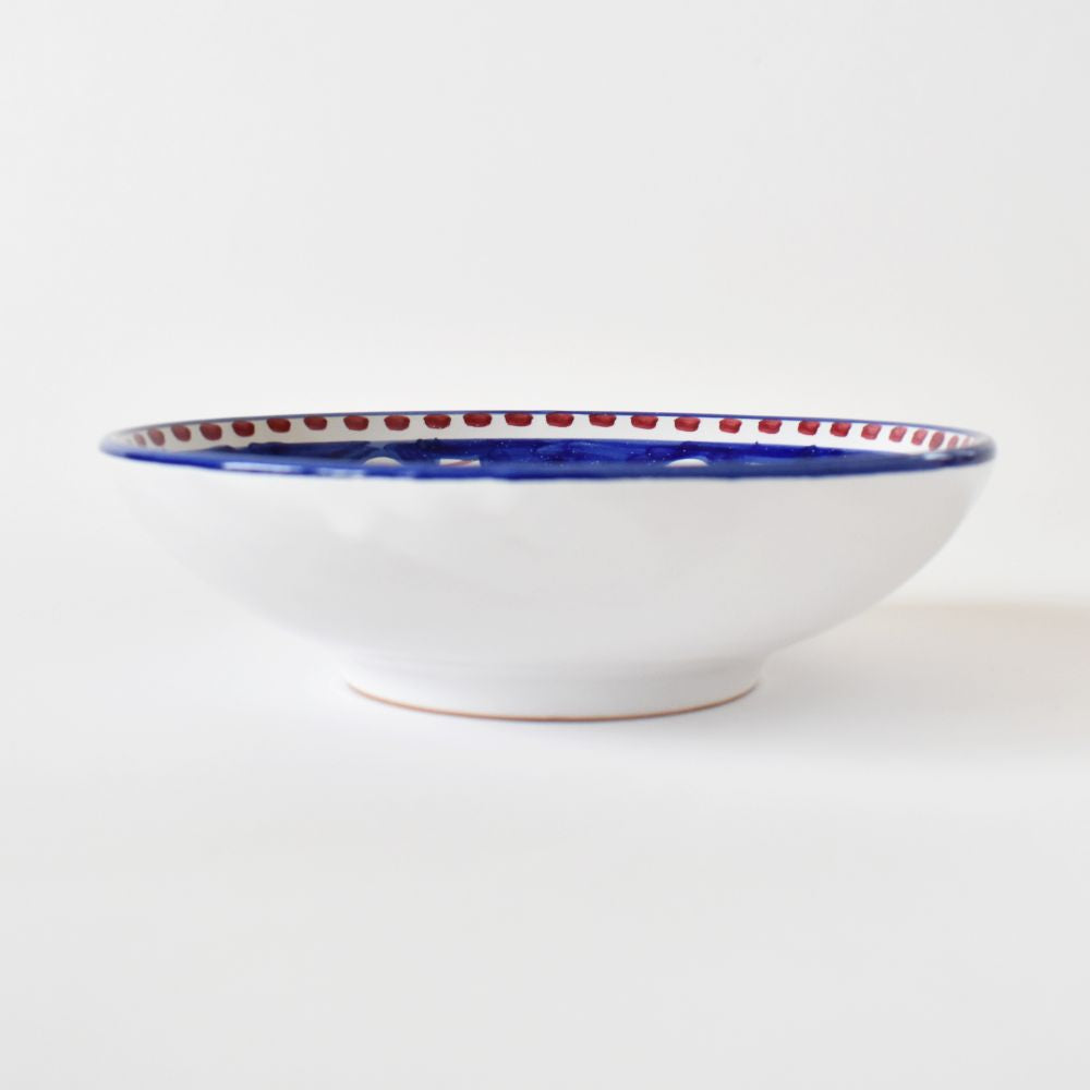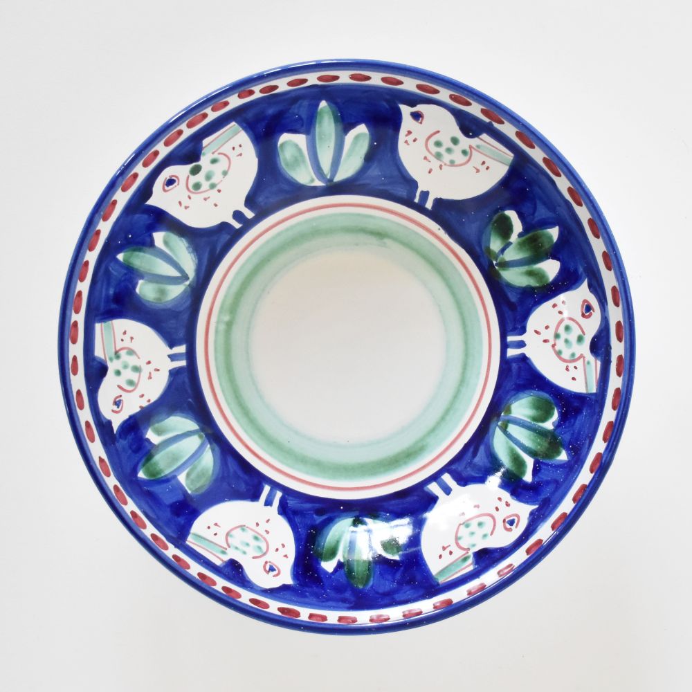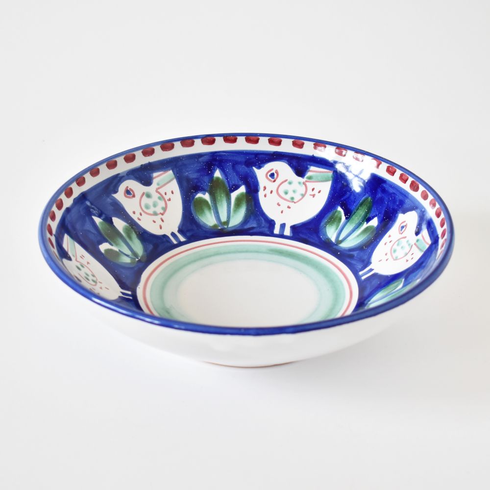 Il Pulcino Blu Cobalto della collezione Campagna è la nostra ciotola preferita in assoluto per porzioni generose di pasta. La forma a coppa di questa ciotola in ceramica è perfetta anche per insalate singole condite con proteine, o come piatto da portata per servire salse o portare in tavola contorni di cereali o verdure. Dipinto a mano dallo studio Solimene di Vietri sul Mare, sulla Costiera Amalfitana.