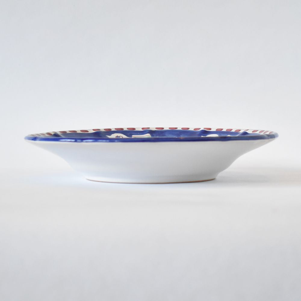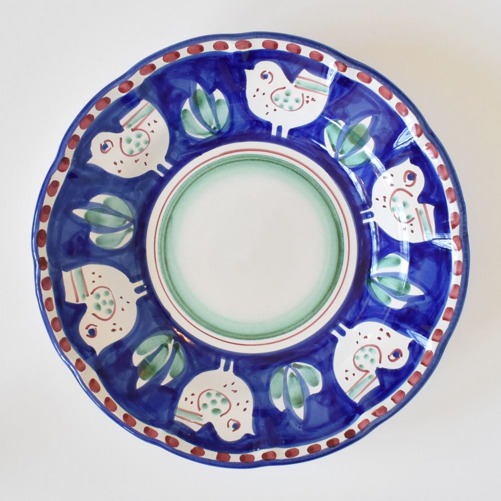 Per una zuppa, un primo piatto o una ciotola per cereali, questo versatile piatto fondo in Pulcino Blu Cobalto sarà il vostro cavallo di battaglia da tavola, che non dimenticherete mai. Le ceramiche della collezione Campagna di Solimene sono dipinte a mano nel loro studio a Vietri sul Mare, sulla Costiera Amalfitana.