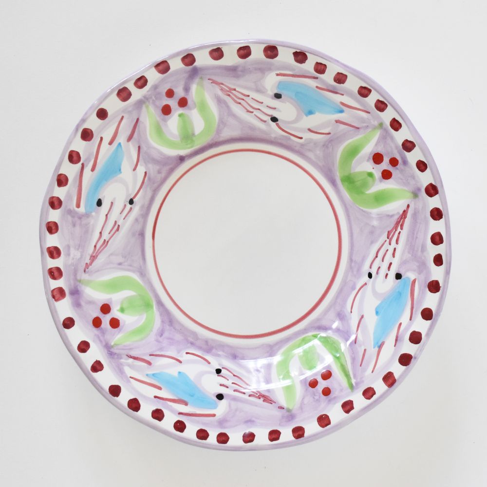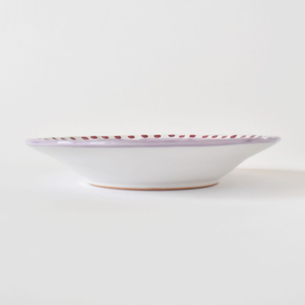 Per una zuppa, un primo piatto o una ciotola per cereali, questo versatile piatto fondo color viola chiaro seppia (calamaro) sarà il vostro cavallo di battaglia da tavola, che non dimenticherete mai. Le ceramiche della collezione Campagna di Solimene sono dipinte a mano nel loro studio a Vietri sul Mare, sulla Costiera Amalfitana.