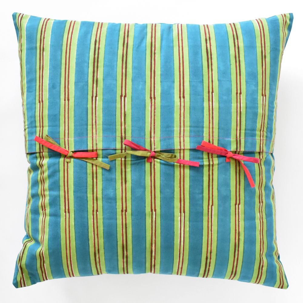 Progettate da Lisa Corti Home Textile Emporium di Milano e realizzate a mano in India, queste federe sono stampate interamente a mano con blocchi di legno e piccole imperfezioni sono ciò che rende ogni pezzo unico. Le federe in 100% cotone stampato a blocchi sono dotate di chiusura a lacci; l'imbottitura del cuscino è in 100% cotone e 100% poliestere.