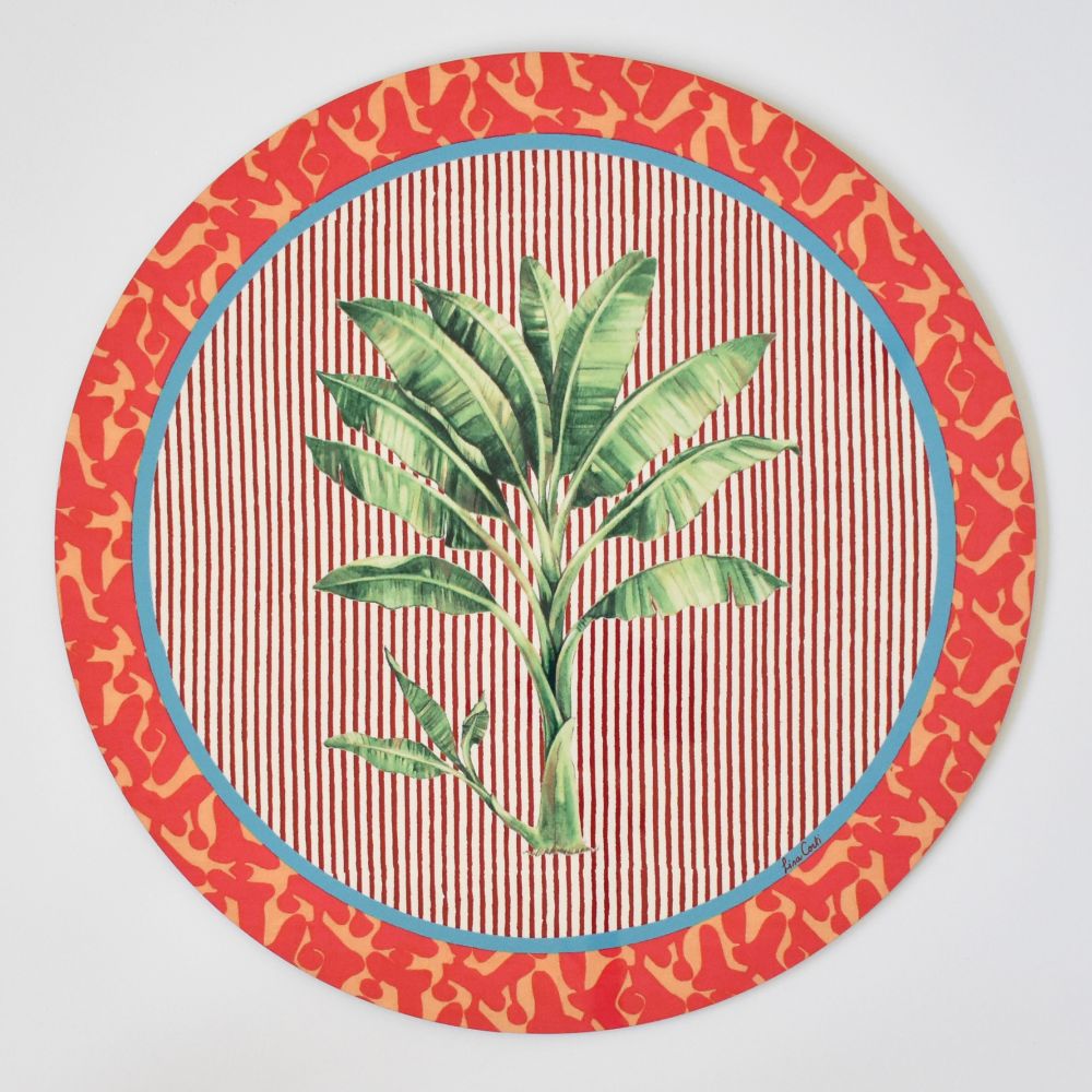 Tovaglietta rotonda Lisa Corti Banano Pink con retro...