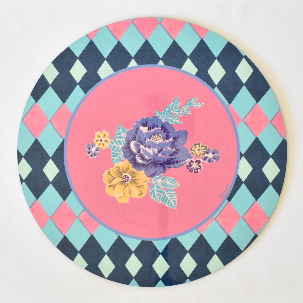 Tovaglietta rotonda Lisa Corti Losanga rosa con retro...