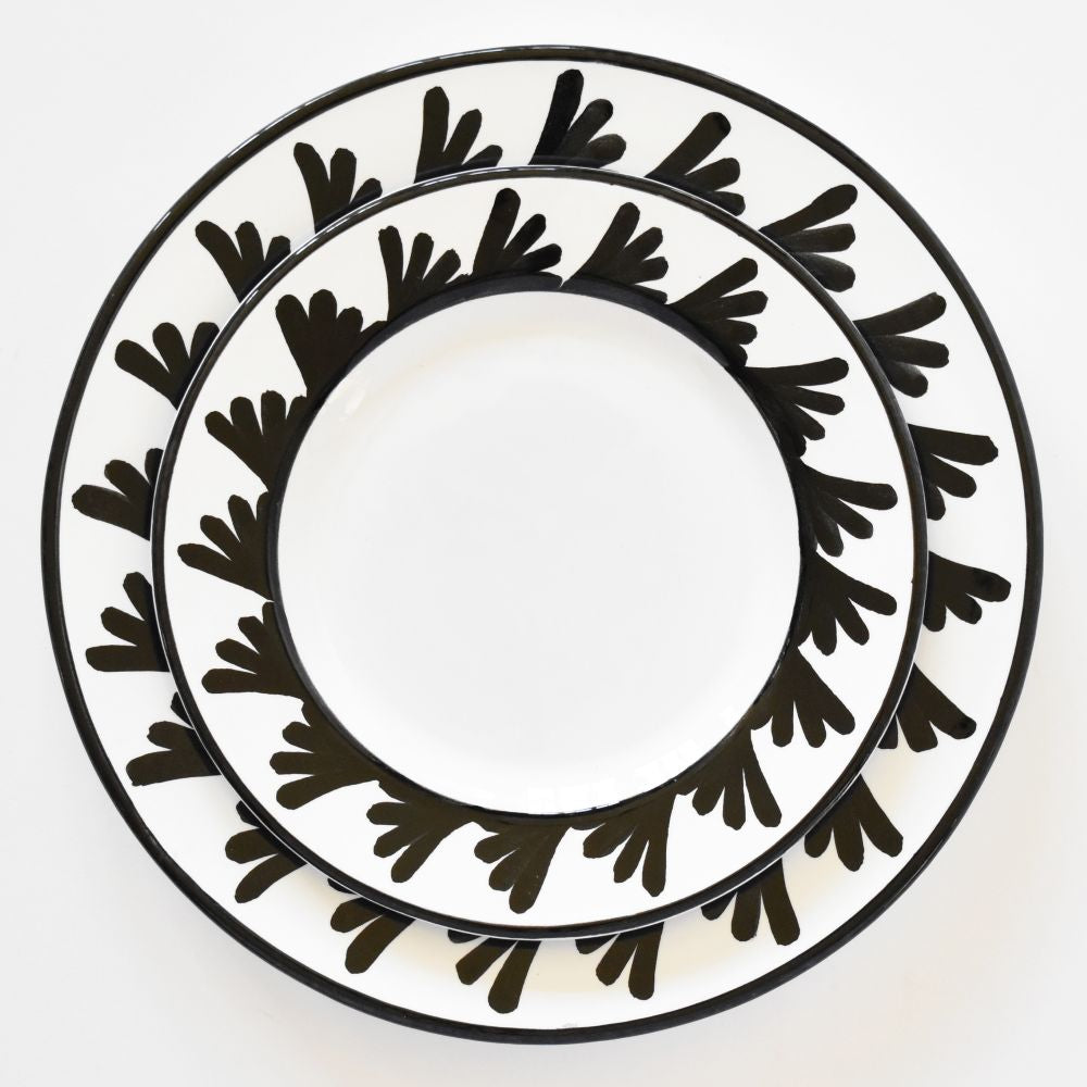 I piatti piani Piume Nero, straordinariamente versatili, sono realizzati a mano in esclusiva per Bellezza Home da artigiani di Deruta, in Italia. Abbina questi piatti piani e tazze in ceramica dipinta a mano con gli altri colori Frecce e Piume della nostra nuova collezione di stoviglie Semplice, così come con tutte le nostre collezioni di stoviglie decorate.