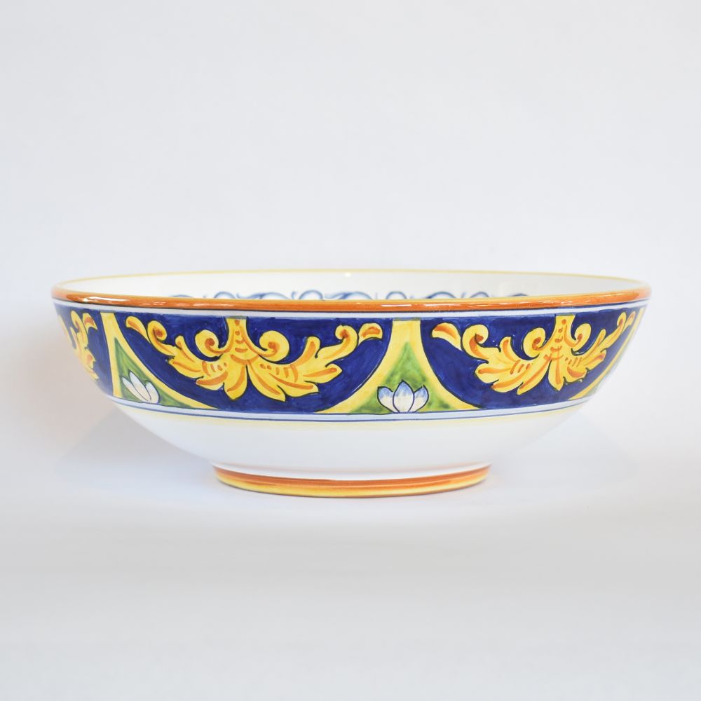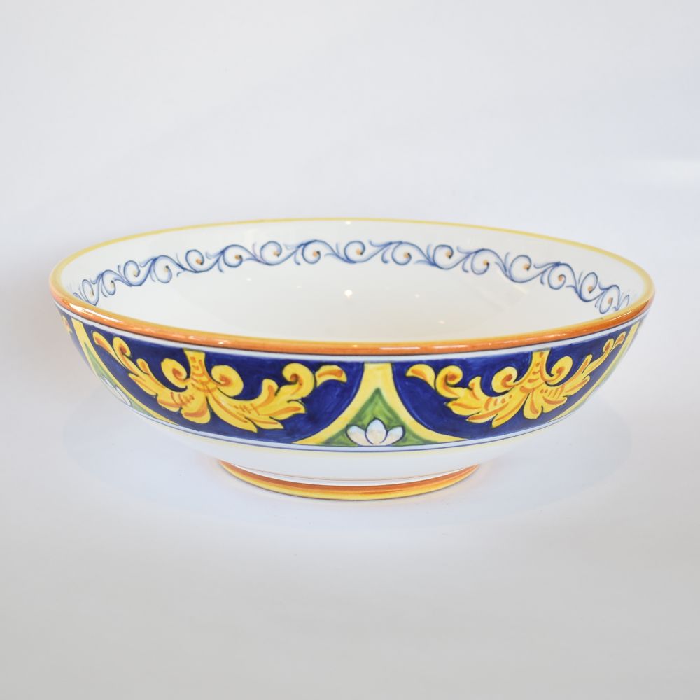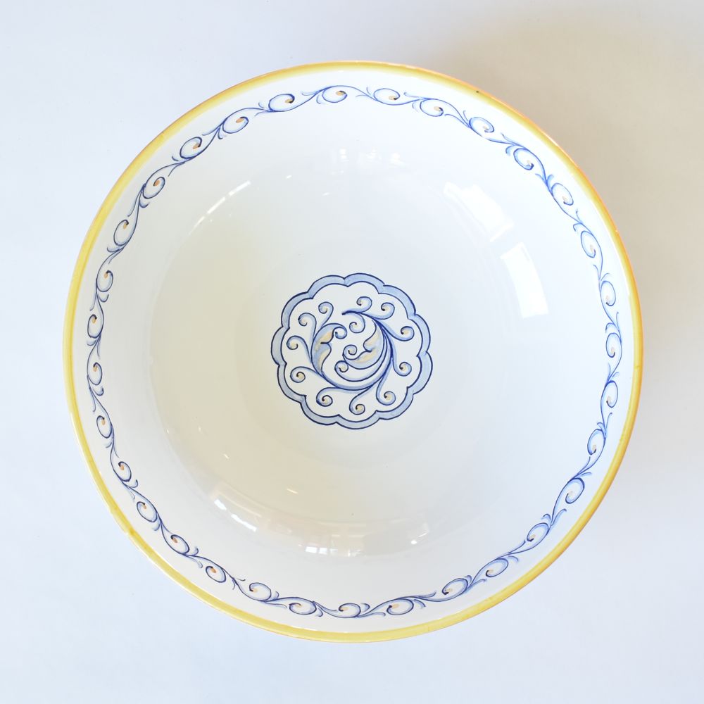 Che la ricetta richieda una ciotola né troppo grande né troppo piccola, o che il tavolo sia a corto di spazio, adoriamo questa ciotola da portata in ceramica italiana delle dimensioni di Riccioli d'Oro, dipinta a mano con l'elegante motivo Crespina . Realizzata a mano da artigiani di Deruta, in Italia, questa ciotola da portata media da 25 cm è la dimensione che cerchiamo sempre, che si tratti di contorni, patatine e pretzel o cene per due.