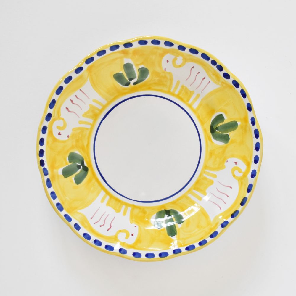 Aggiungi un piatto Montone Giallo alla tua pila di piattini per insalata, dessert, colazione o qualsiasi altro momento. Le stoviglie in ceramica della collezione Campagna sono realizzate a mano dallo studio Solimene di Vietri sul Mare, sulla Costiera Amalfitana.
