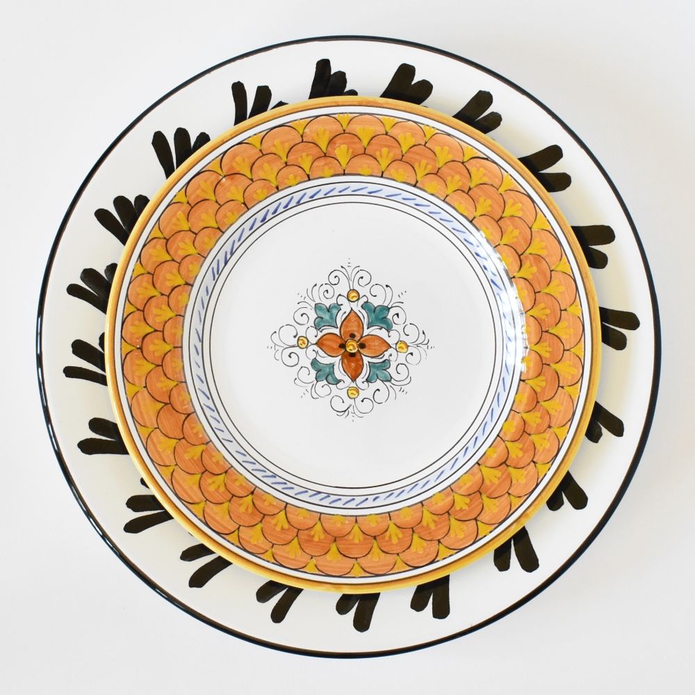 Adoriamo il modo in cui questi piatti da insalata in ceramica con motivo "Terracotta Squame " si abbinano a piatti piani e sottopiatti in tanti stili diversi! Abbinali a classici dettagliati o a semplici sottopiatti e faranno da splendida cornice al capolavoro culinario che hai creato (o ai dolci portati dal tuo panificio di quartiere). Realizzati a mano da artigiani di Deruta, in Italia, questi versatili piatti in maiolica sono perfetti per insalate, dessert, colazioni o qualsiasi piccolo pasto o spuntino.